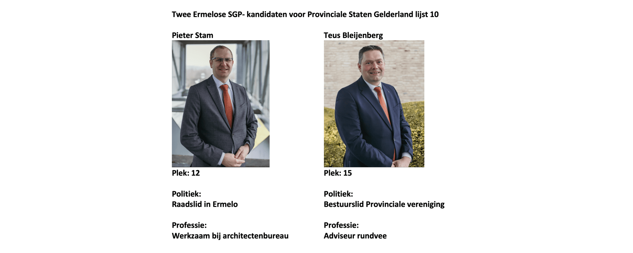 Twee Ermelose SGP-kandidaten voor Provinciale staten Gelderland Lijst 10